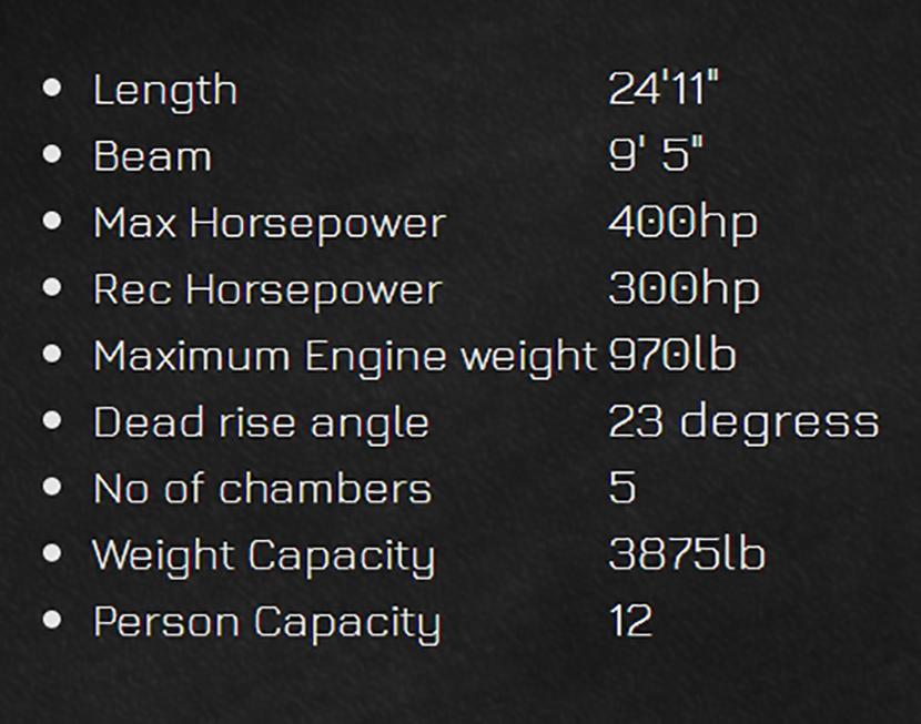 推薦馬力: 300hp 載重量: 3875lb