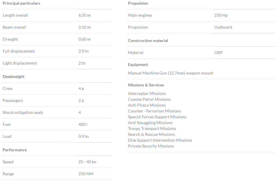 | 總長: | 6.50m | 航速: | 40kn |