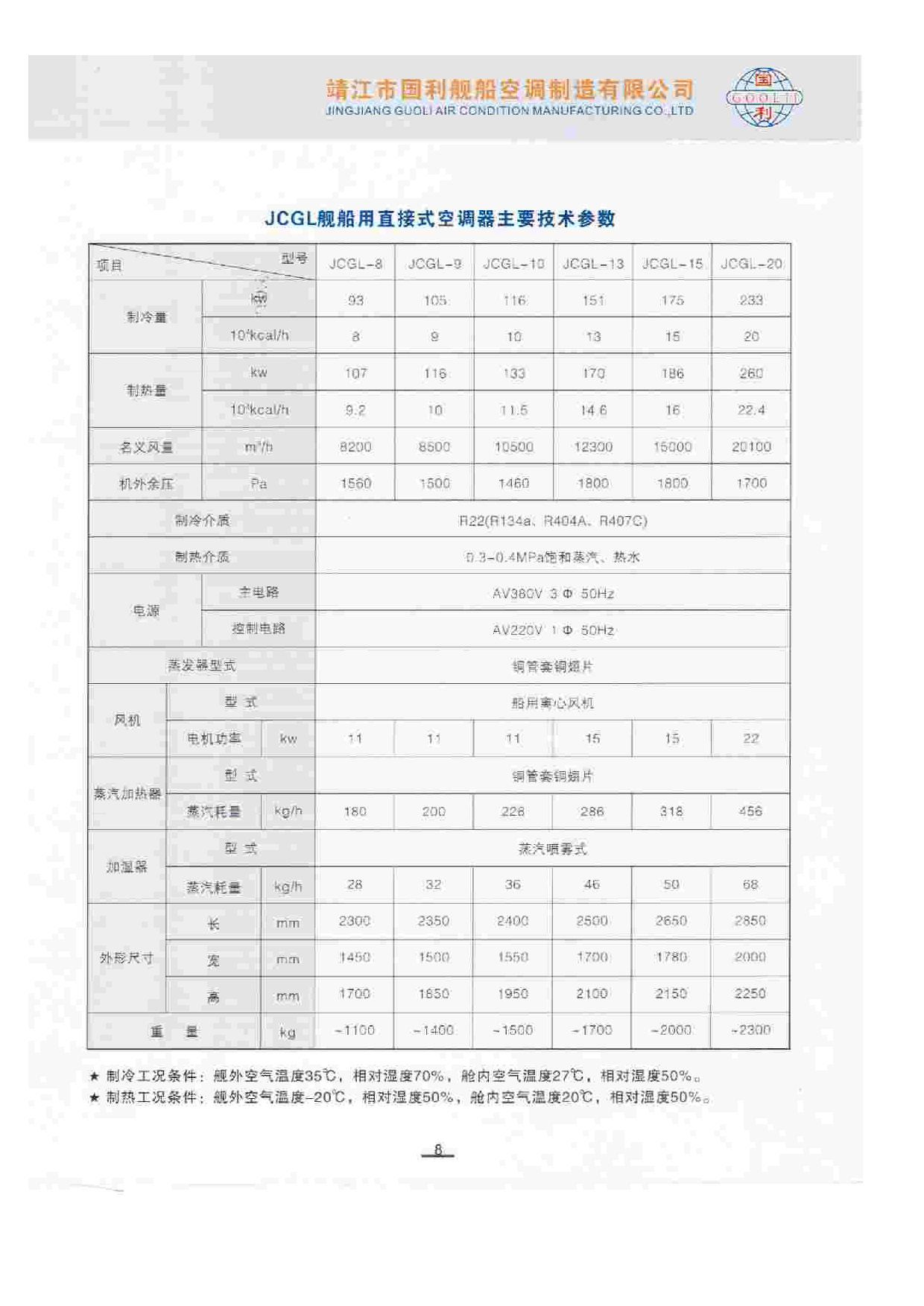 機(jī)外余壓: 1700 Pa 制冷介質(zhì): R22(R134a、R404A、R407C)