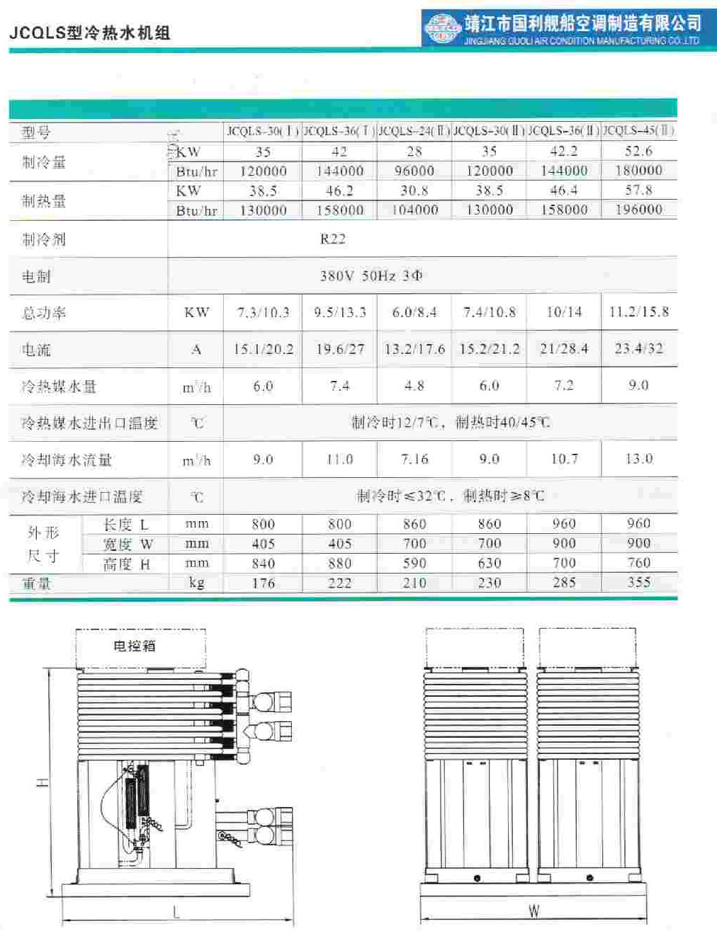 冷卻海水流量: 9.0 m3/h 冷卻海水溫度: 制冷時≤32℃,制熱時≥8℃