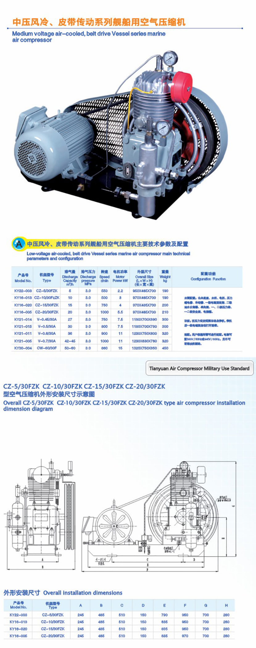 | 艦船用中壓風冷&皮帶傳動空氣壓縮機 | |||