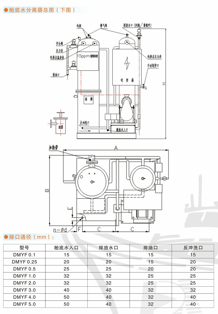 艙底入水口接口通徑: 40mm 排放水口接口通徑: 40mm