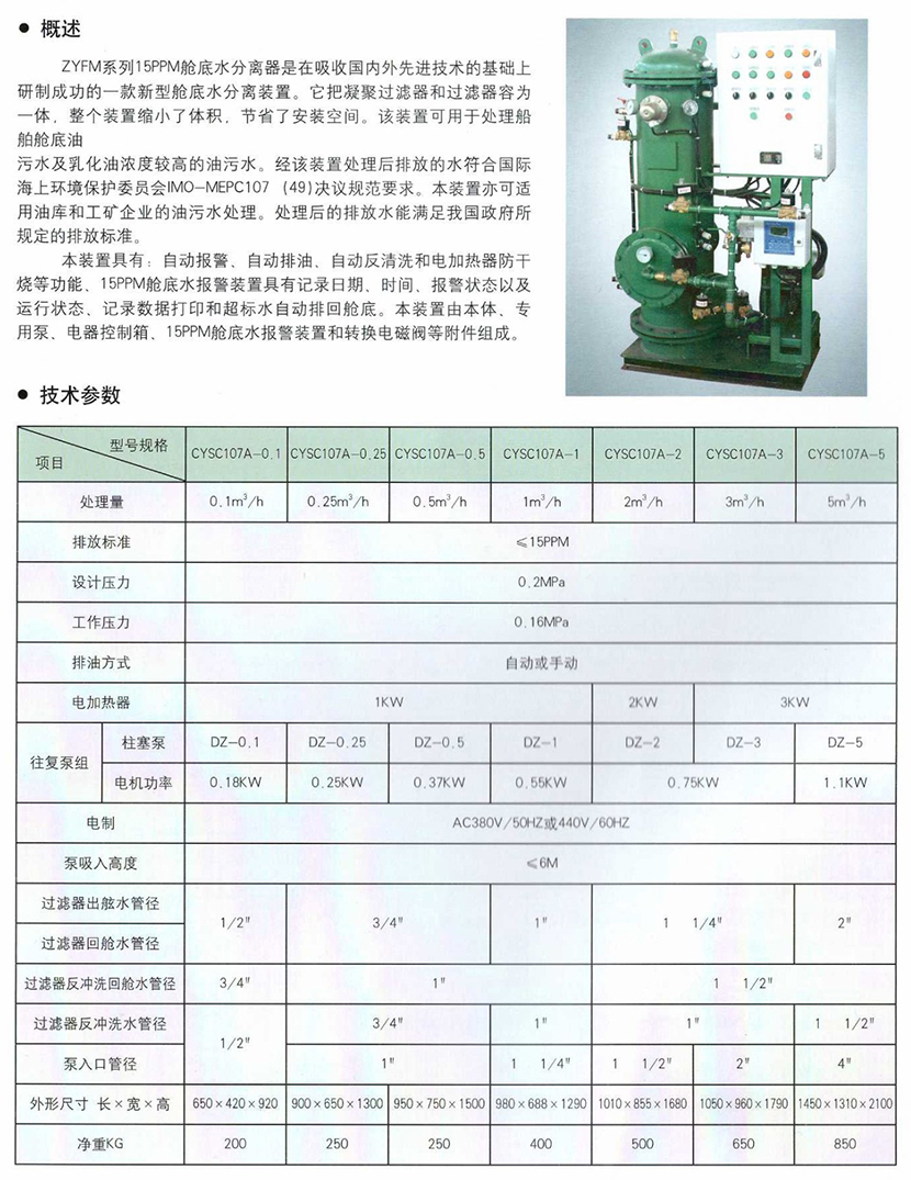 YWC系列15ppm艙底水分離器