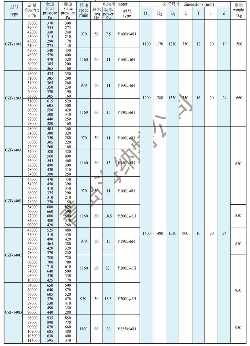 靜壓: 140Pa 電機頻率: 50Hz