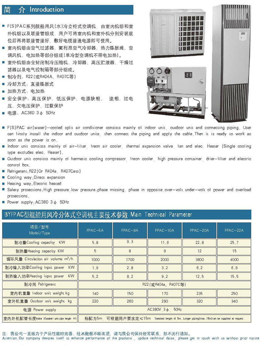 制冷介質: R22(或R404A,R407C等) 主電路電源: AC380V 3Φ 50Hz