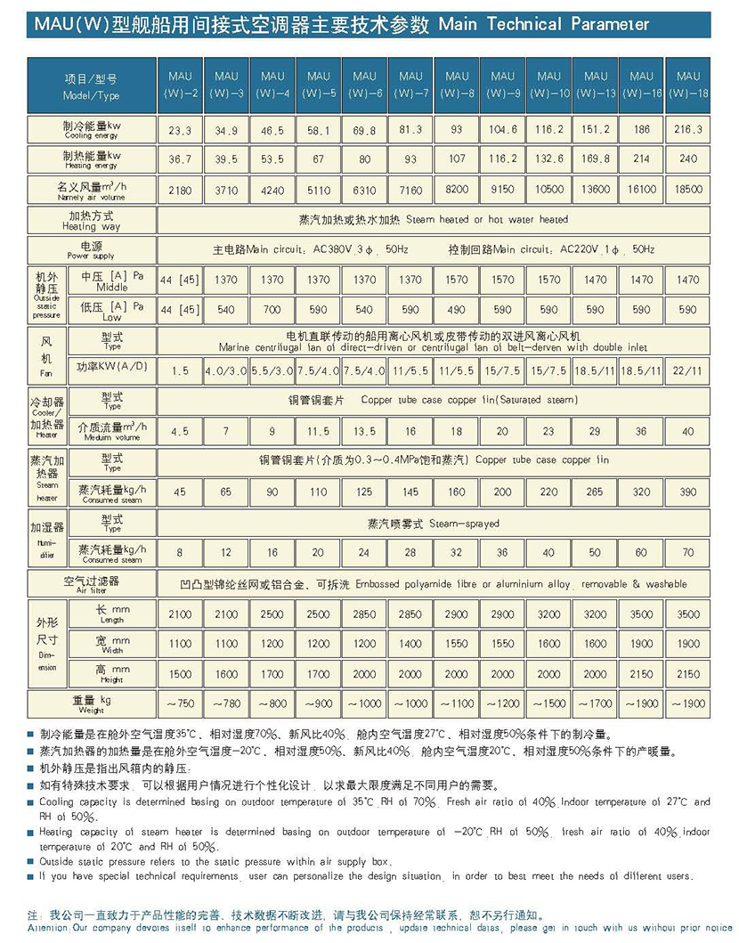 | 風(fēng)機電機功率: | 7.5/4.0kW | 蒸汽加熱器型式: | 銅管銅套片(介質(zhì)為0.3~0.4MPa飽和蒸汽) |