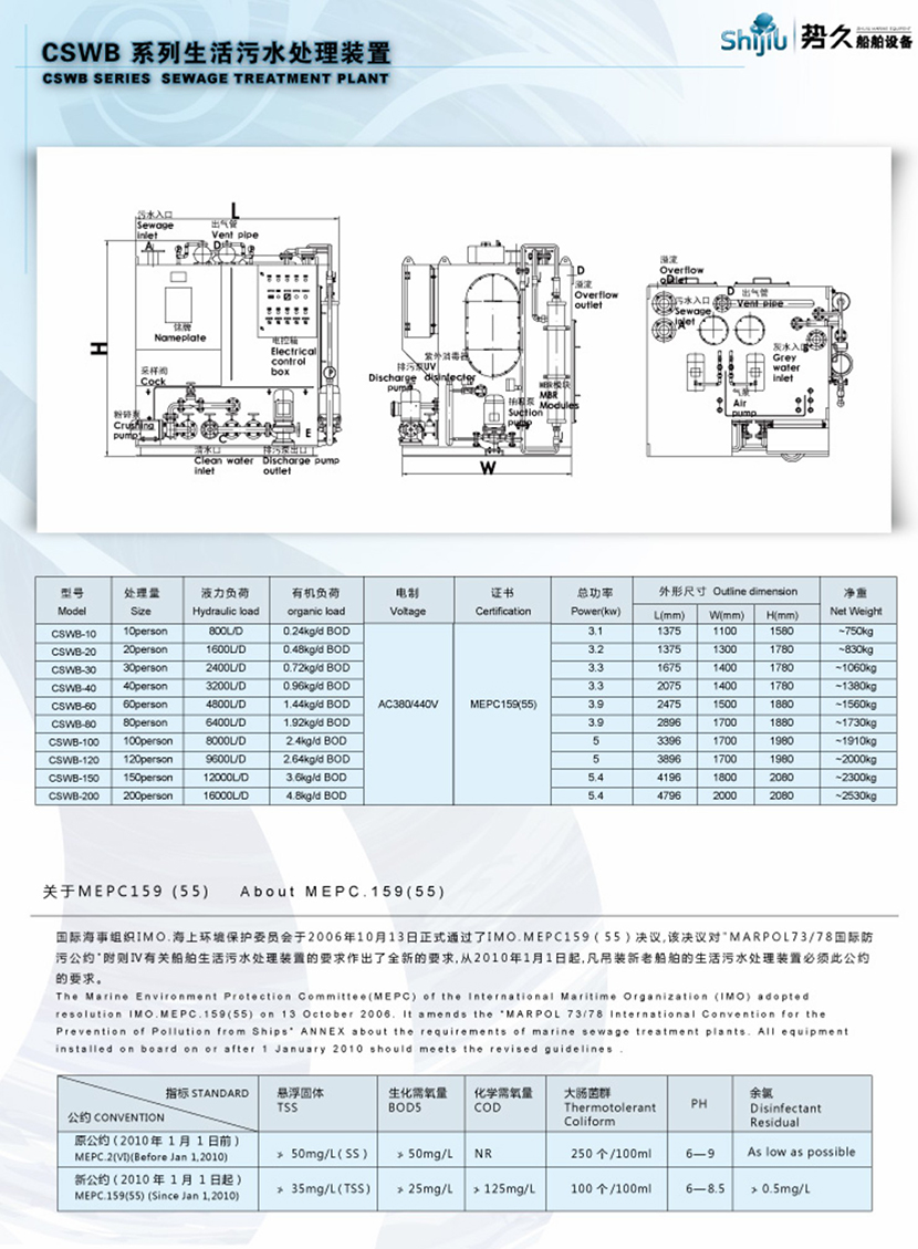 處理量: 120person 證書: MEPC159(55)