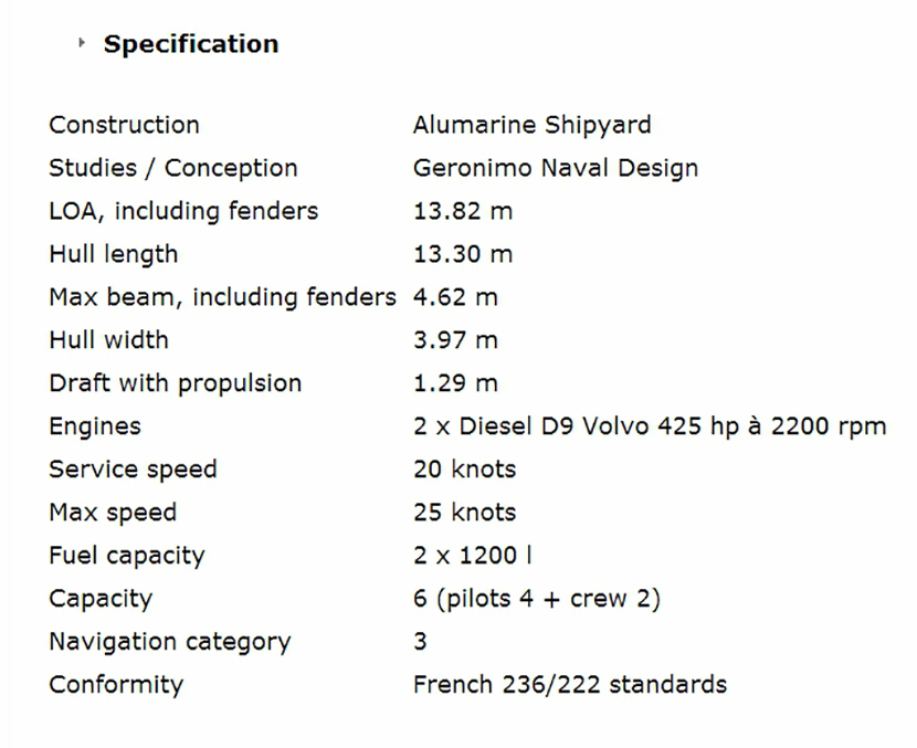 總長(zhǎng): 13.82m 航速: 20kn