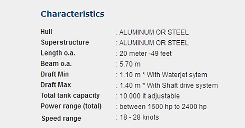 總長(zhǎng): 20m 航速: 18kn