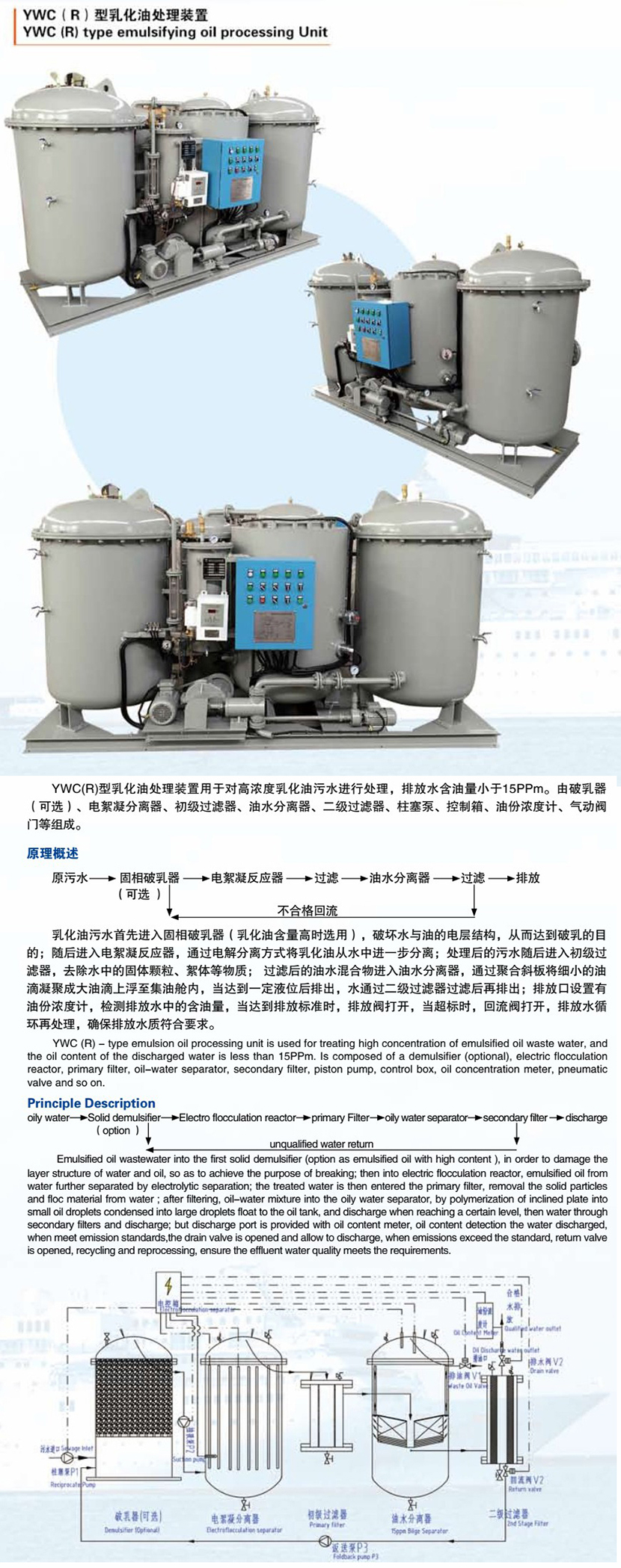 額定處理量: 1.50m3/h 排放液油份含量: ≯15ppm