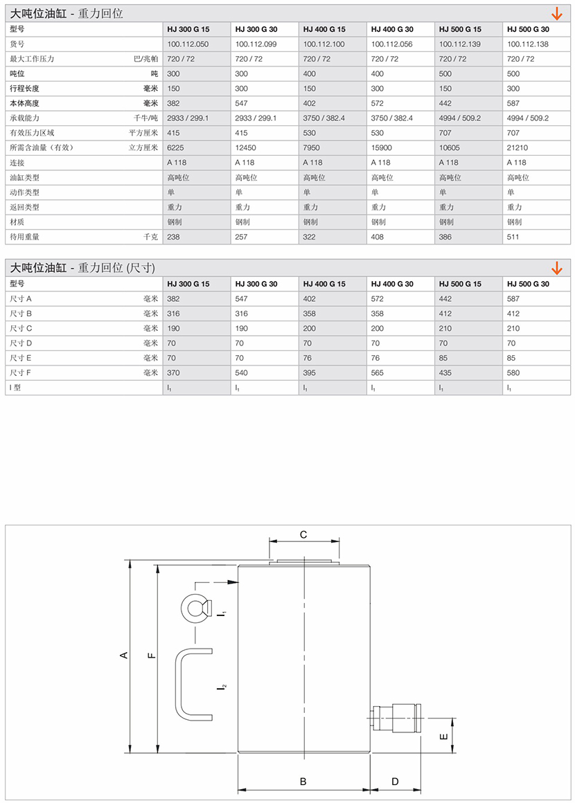 最大工作壓力: 720巴/72兆帕 第一段行程長度: 150 毫米