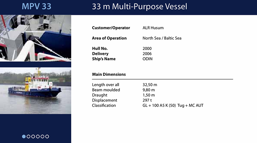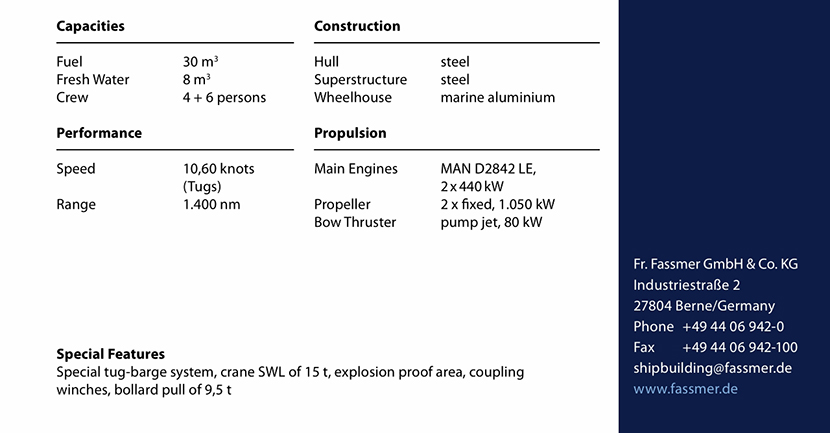 | 發(fā)動(dòng)機(jī)功率: | 2×440kW | 推進(jìn)裝置: | 2×fixed,1.050kW |