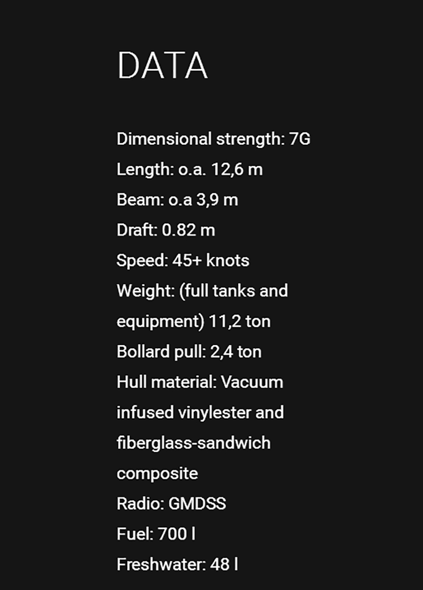 | 總長(zhǎng): | 12.6m | 航速: | 45kn |