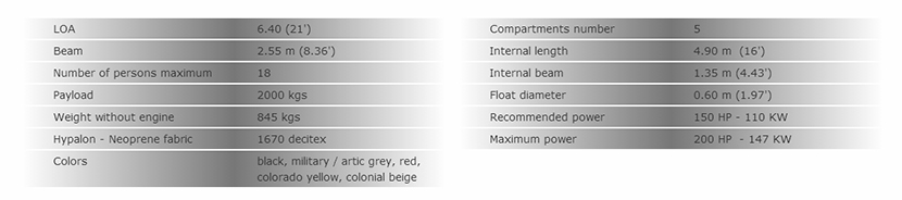 總長: 6.4m 發動機功率: 200hp