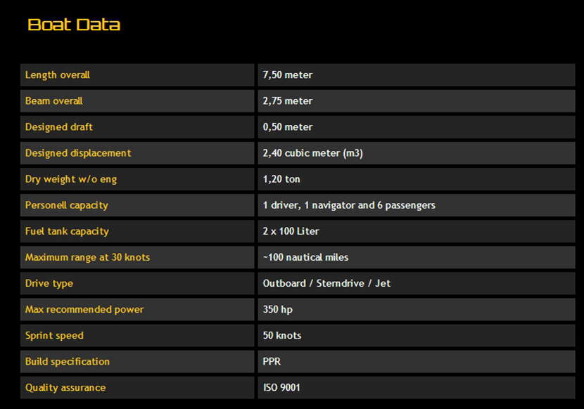 總長: 7.50m 航速: 50kn