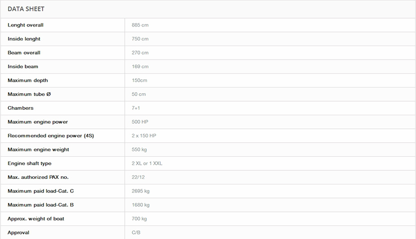 總長: 8.85m 總重量: 700kg