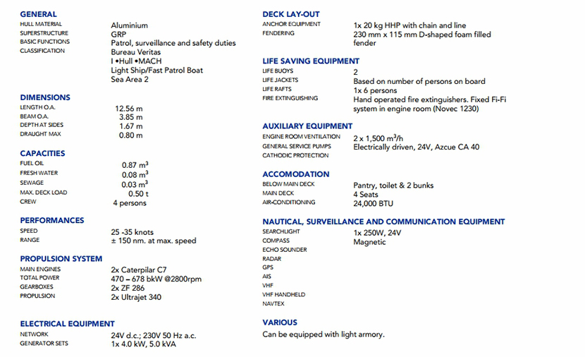 總長: 12.56m 航速: 25kn