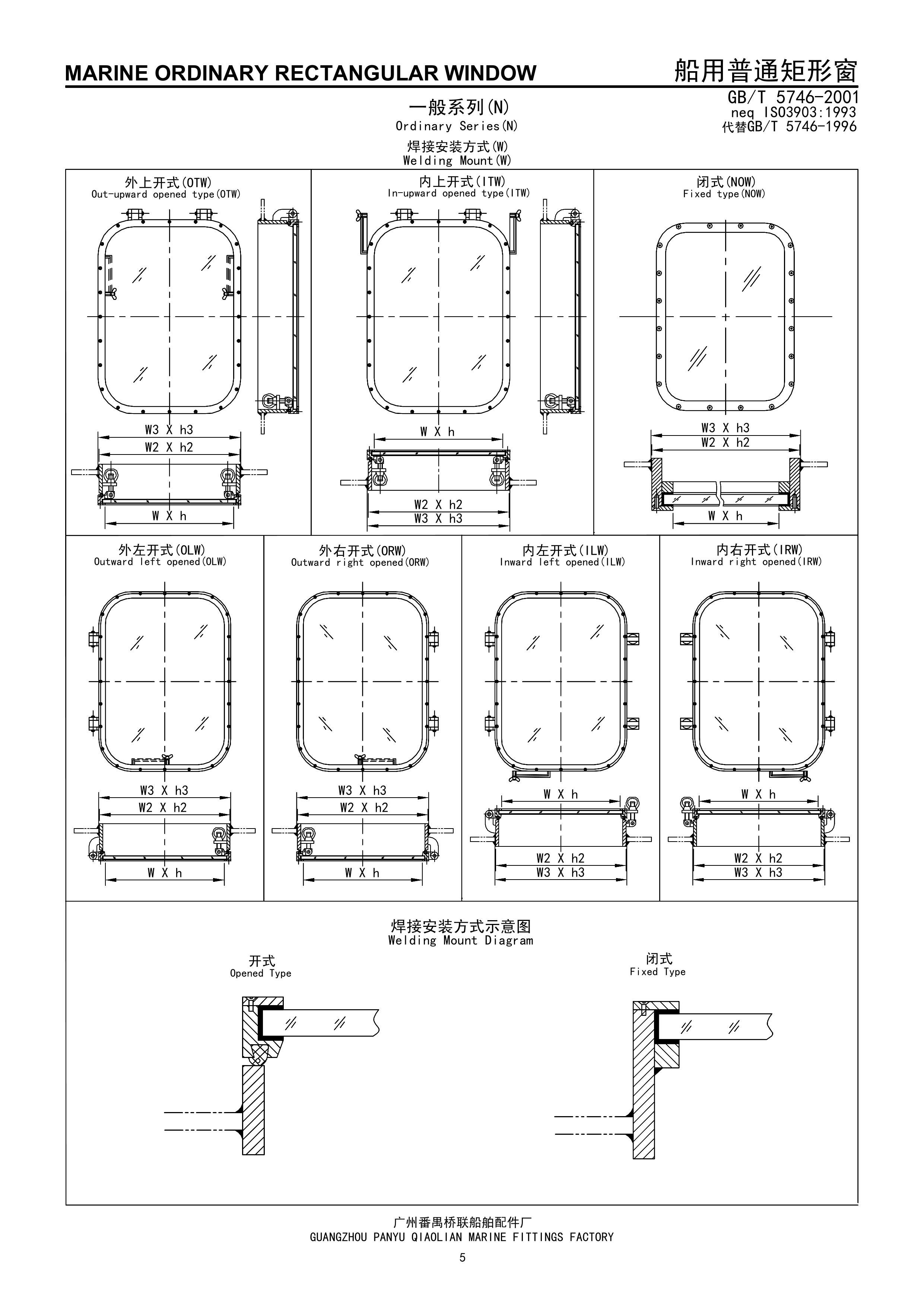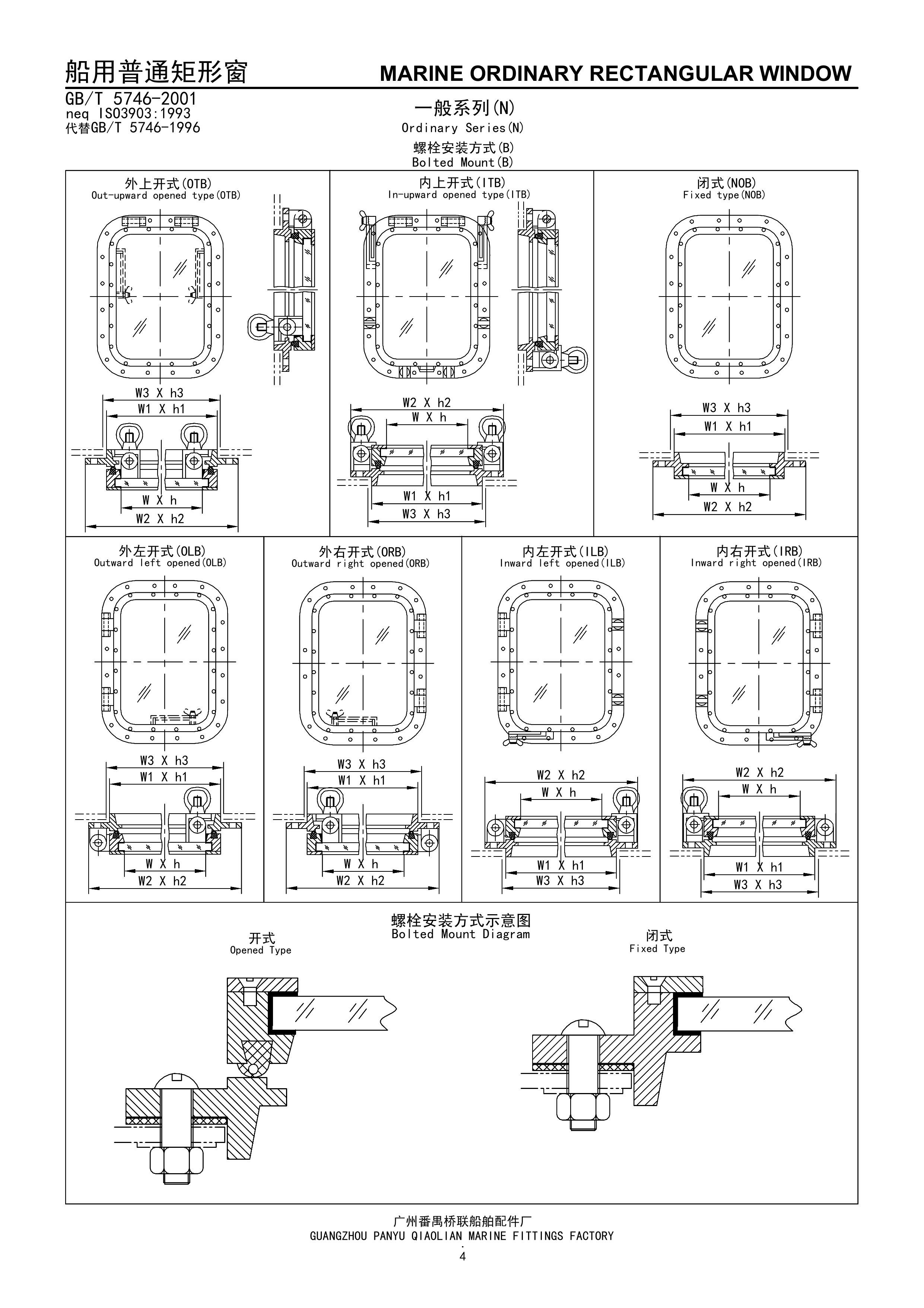 船用螺栓安裝式普通矩形窗