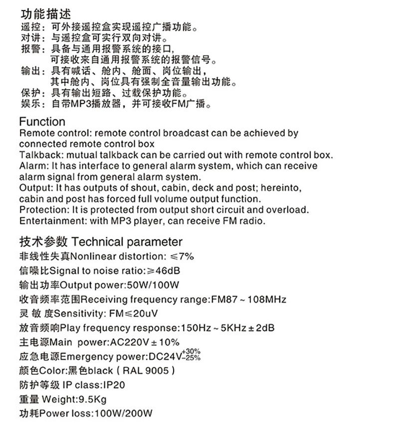 | 頻率: | FM87~108MHz | 重量: | 9.5Kg |