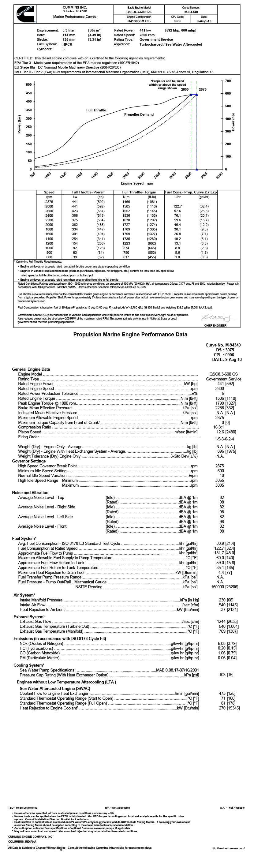 進氣方式: Turbocharged/Sea Water Aftercooled 最大扭矩: 1799N.M(轉速為1800rpm下的最大扭矩)