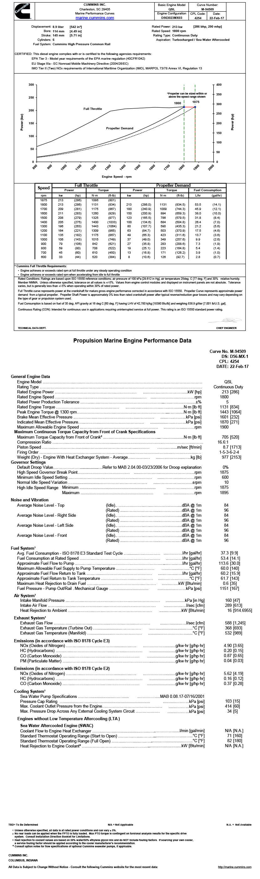 進氣方式: Turbocharged/Sea Water Aftercooled 最大扭矩: 1443N.M(轉速為1300rpm下的最大扭矩)