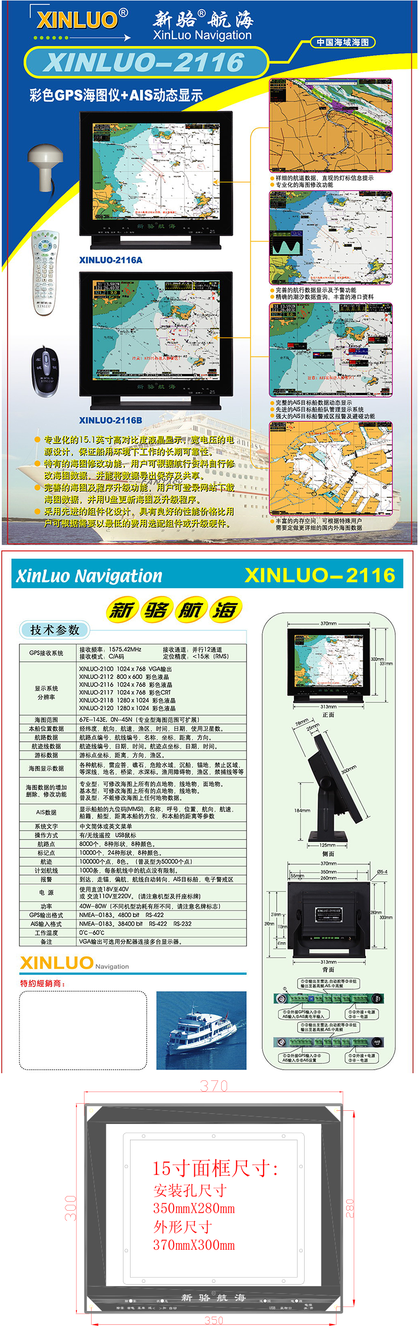 顯示模式: 經緯度;航向;航速;漁區;時間;日期;使用衛星數 海圖顯示范圍: 67E-143E,ON-45N(專業型海圖范圍可擴展)