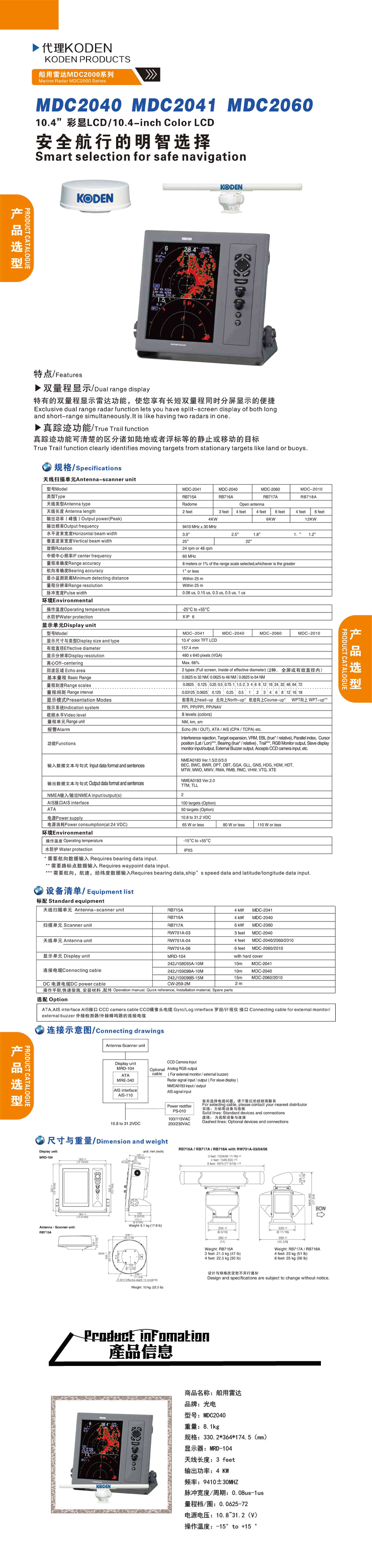 輸出功率: 4kW 天線水平波束寬度: 3.9°/2.5°/1.8°/1°/1.2°