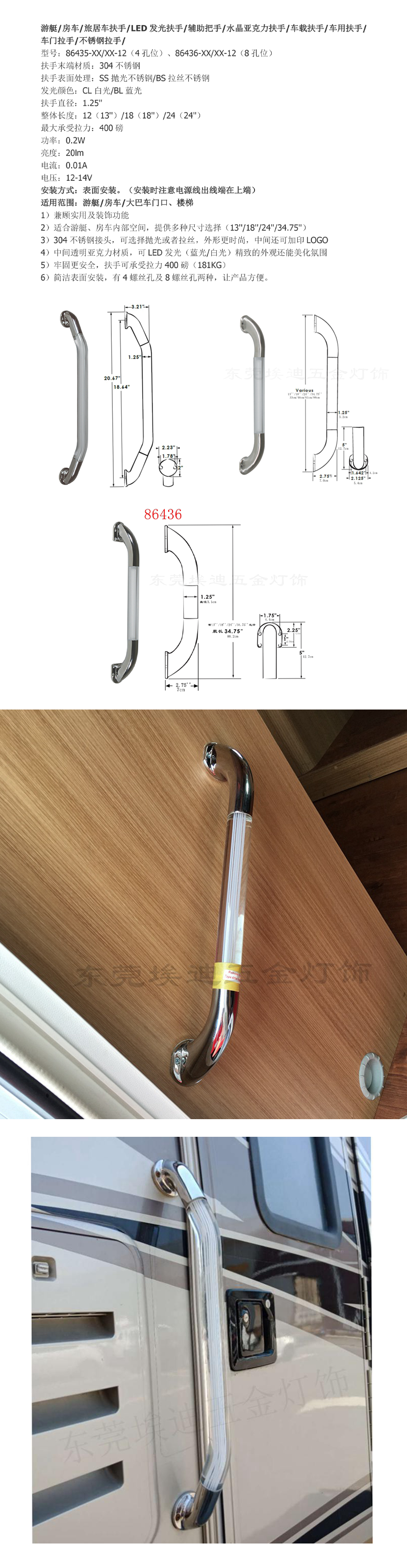 不銹鋼LED發(fā)光扶手86436-XX/XX-12東莞埃迪五金燈飾有限公司 |
