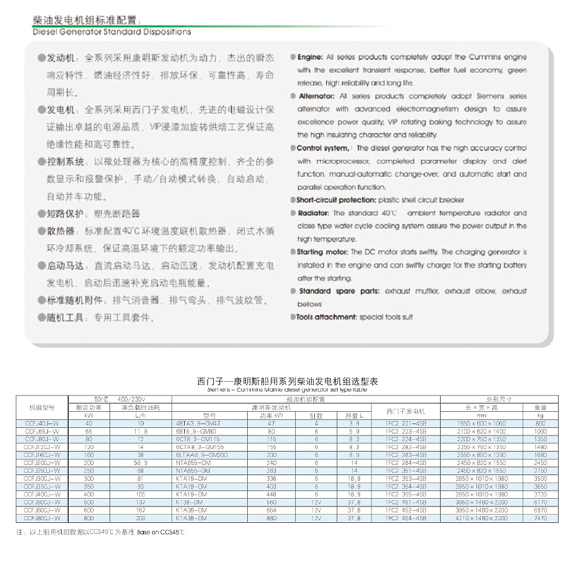 西門子-康明斯船用系列柴油發(fā)電機(jī)組