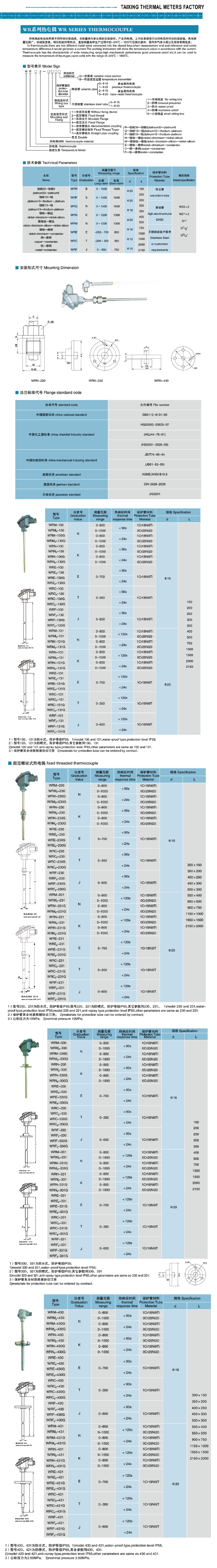 WR系列熱電偶