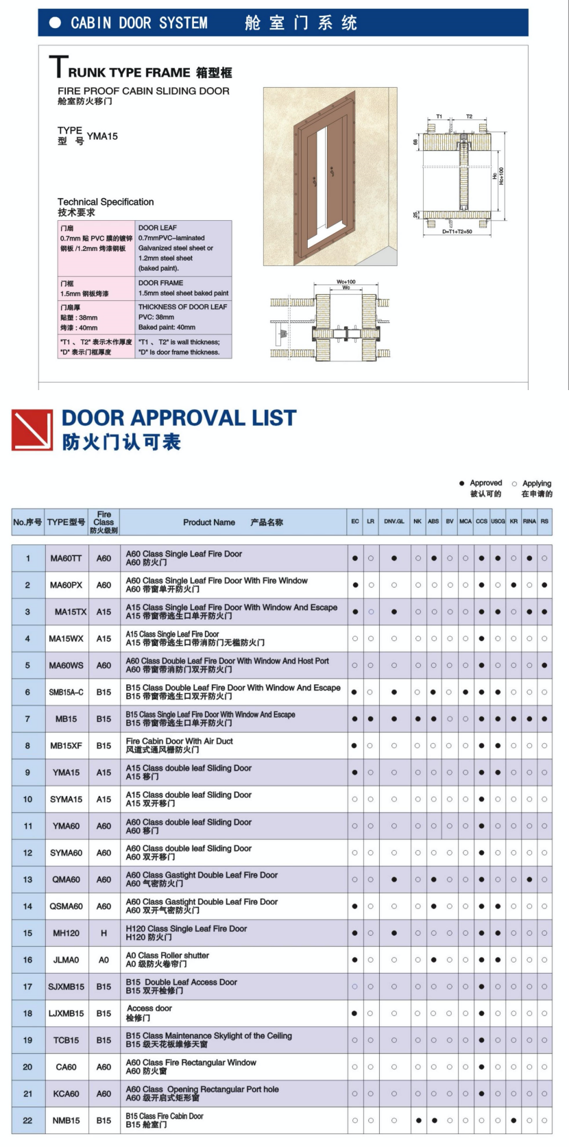 | 艙室門系統箱型框艙室防火門 | |||