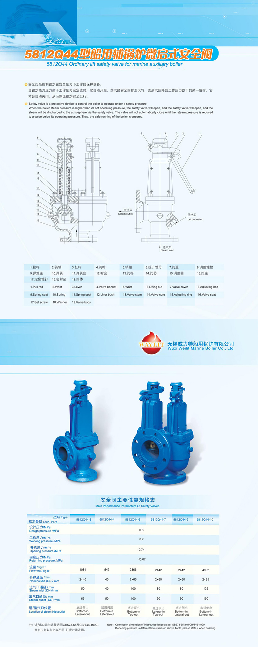 5812Q44型船用輔鍋爐微啟動式安全閥
