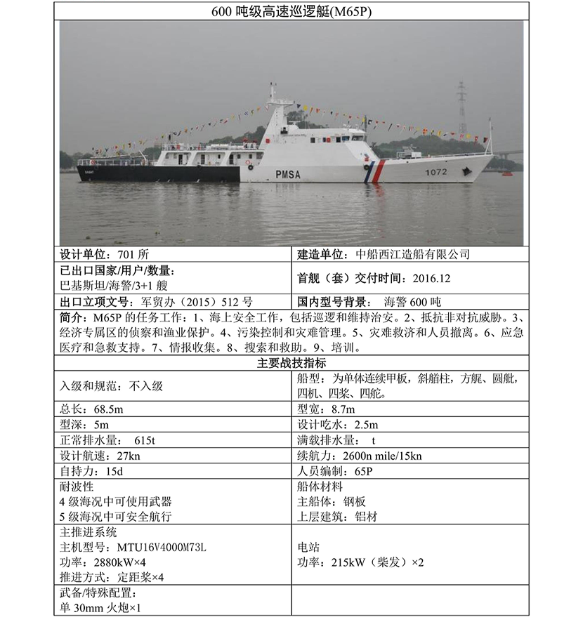 | M65P 600噸級高速巡邏船 | |||