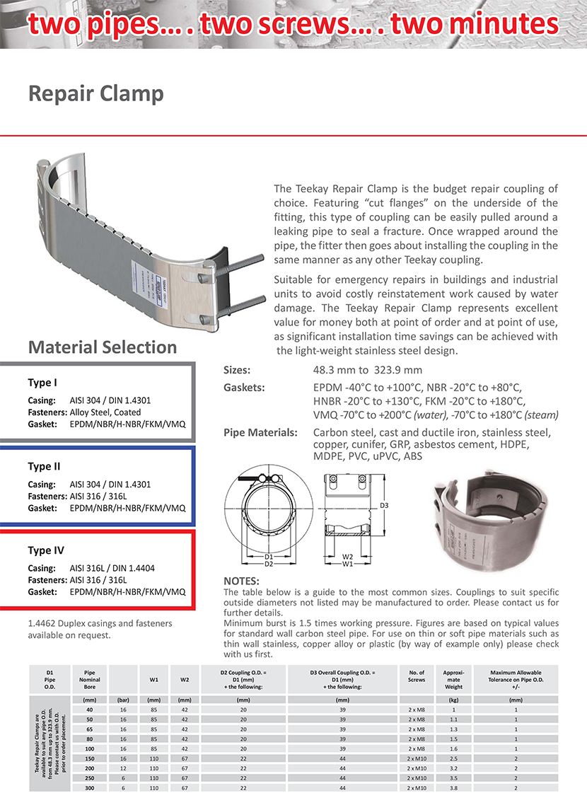 適用管道外徑: 40~300mm 工作壓力: 6~16bar