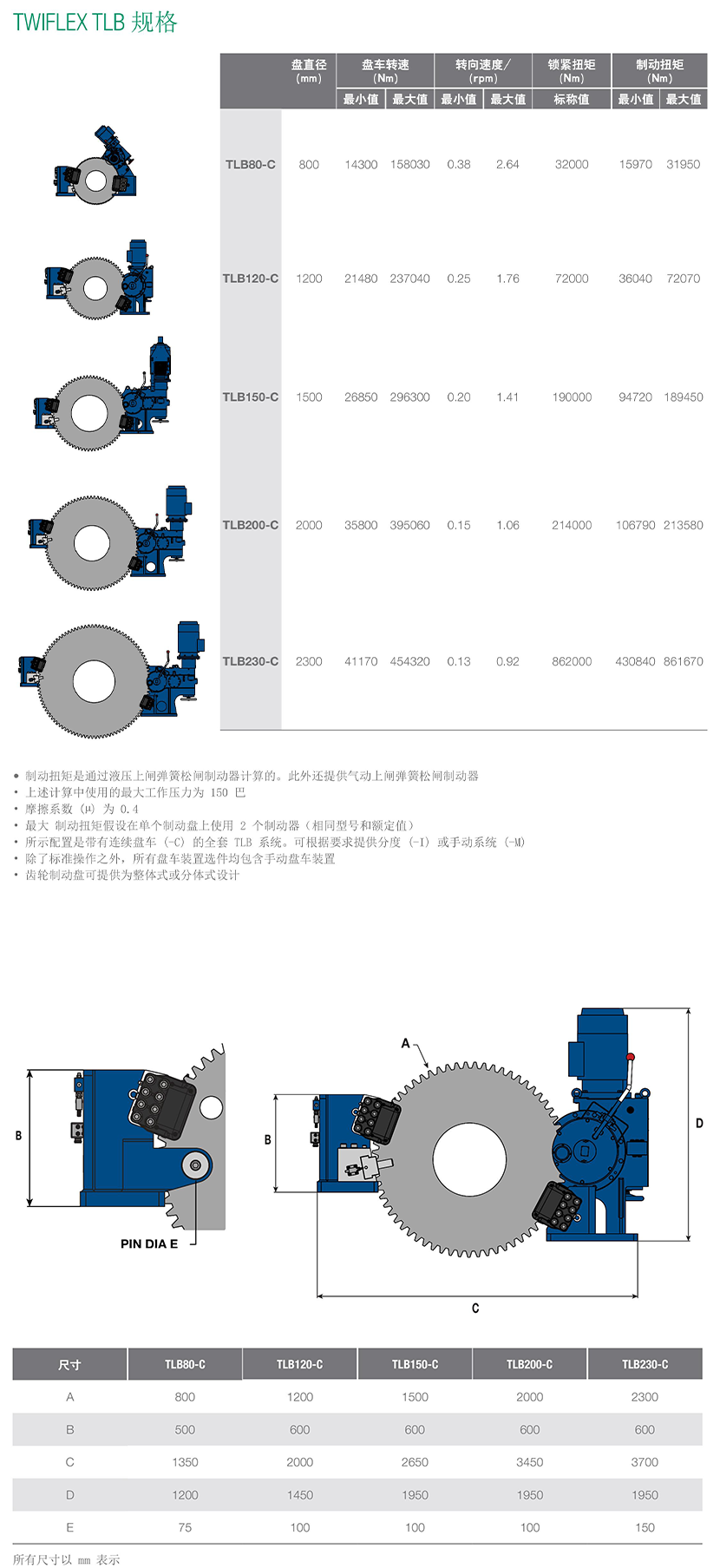 2000mmTLB系列盤車、鎖定和制動系統
