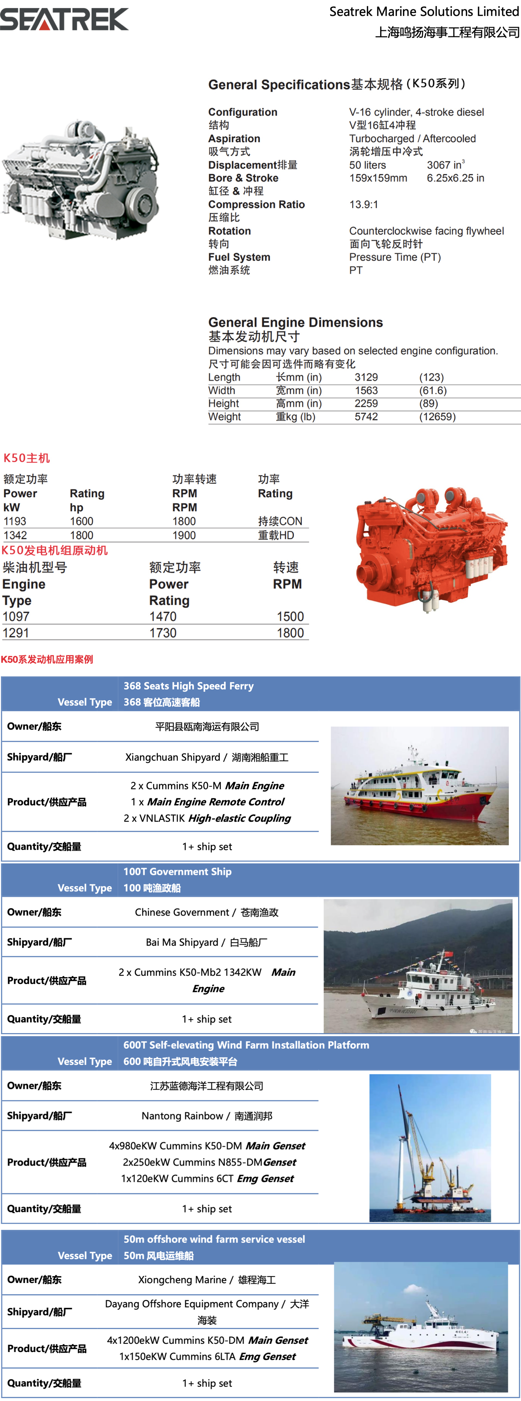 平臺 K50系列1193/1342kw船用發動機