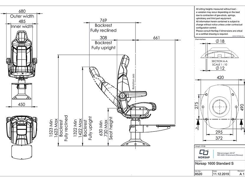 座位360度旋轉(zhuǎn): 支持 座位前后滑移類型: 需配合Norsap滑軌裝置