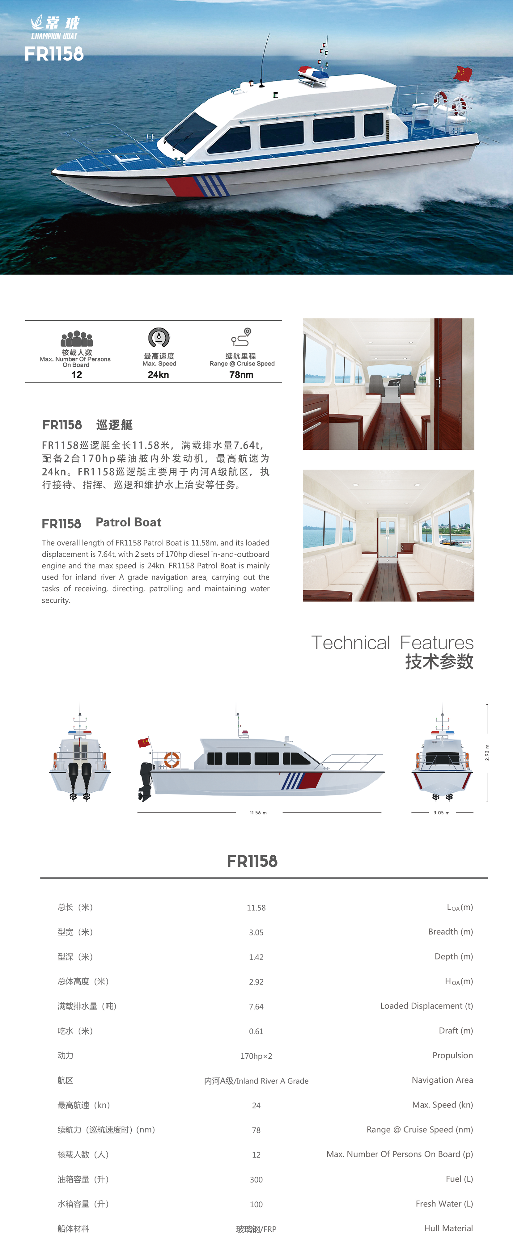 排水量: 7.64t 航區: 內河A級/Inland River A Grade