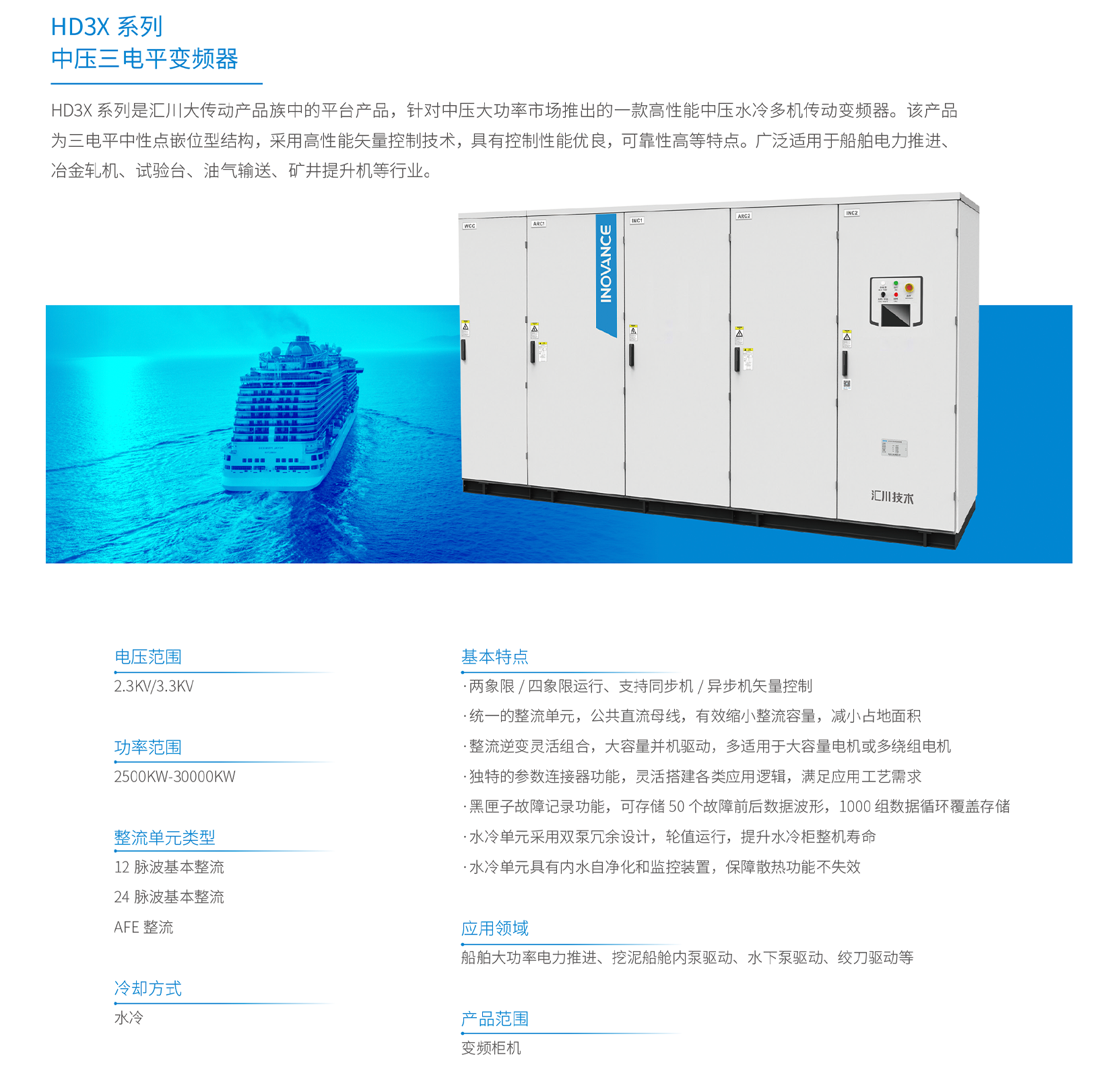 電壓范圍: 2300/3300V 功率范圍: 2500~30000KW